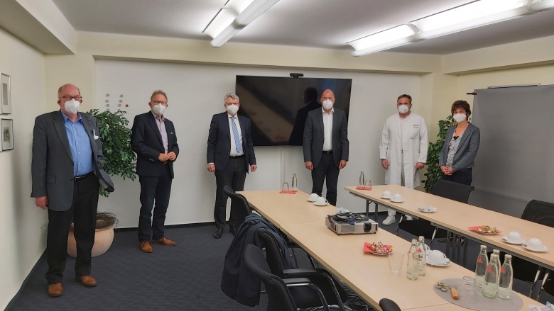 Zu einem Kennenlernbesuch im Krankenhaus in Kirchen begleiteten MdB Erwin Rüddel und MdL Michael Wäschenbach, sowie Birgit Ahnert für den CDU-Stadtverband Kirchen den Kandidaten Michael Conrad. Herr Bernd Decker gab als Geschäftsführer der DRK Trägergesellschaft Süd-West mbH einen Einblick über die Krankenhaus-Landschaft. Mit dabei waren auch der ärztliche Direktor und Chefarzt Dr. med. Gerald Hensel und die Pflegedirektorin Michaela Meinhardt. Es wurde das schwierige Marktumfeld für das Krankenhaus besprochen, wobei es kleinere Häuser wegen der Grundpauschale, die für alle gleich ist, schwerer haben als große Häuser. Die Politiker lobten die gemeinsamen Anstrengungen in den letzten Monaten zu deutlichen Verbesserungen des medizinischen Angebotes. Dies sei auch ein Verdienst des kaufmännischen Direktors Nicki Billig, der urlaubsbedingt nicht dabei sein konnte. Frau Meinhardt sprach die Sorge an, Pflegeschüler und Pflegeabsolventen in der Region zu halten. Man arbeite daran, die Attraktivität des Standortes z. B. durch flexible Dienstzeitmodelle zu stärken. Die bevorstehende Digitalisierung sei eine Herkules-Aufgabe, so Dr. Hensel. Die Kommunikation der Akteure im Gesundheitswesen werde komplett neu organisiert. Michael Conrad bedankte sich abschließend für das Gespräch und sicherte die vollste Unterstützung nach seiner Wahl zu.
