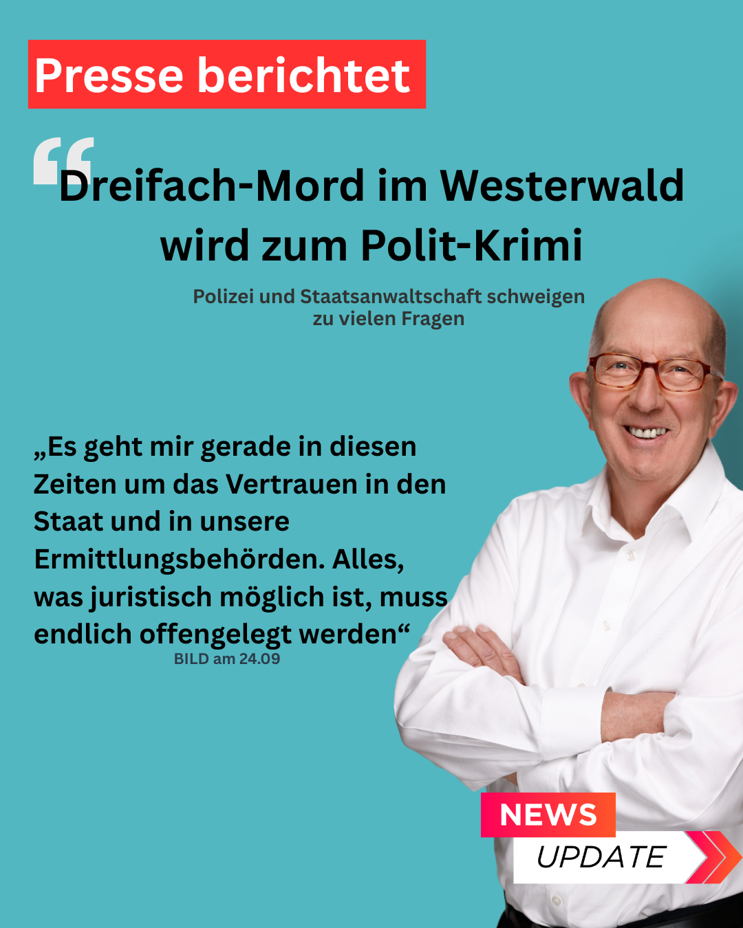 Der Politiker aus dem Kreis Altenkirchen (Rheinland-Pfalz) hat dazu eine Kleine Anfrage an die rot-grün-gelbe Landesregierung gestellt – mit klaren Fragen zum Dreifach-Mord im Westerwald.